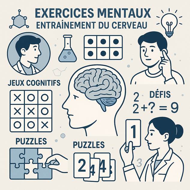 Illustration des exercices et activités pour entraîner les capacités cognitives