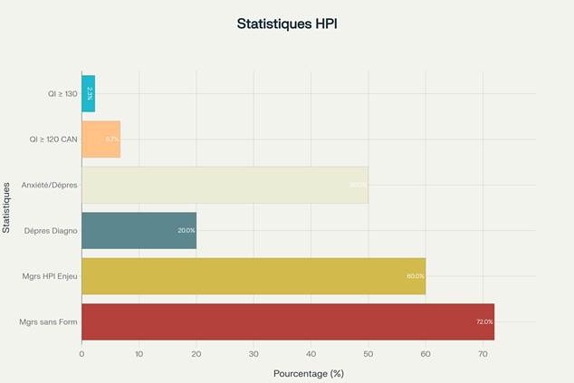 Le Haut Potentiel Intellectuel (HPI) représente une particularité neurologique touchant 2,3% de la population française, soit environ 1,5 million de personnes. Ces individus, caractérisés par un quotient intellectuel supérieur ou égal à 130, possèdent des capacités cognitives exceptionnelles qui se manifestent par une pensée en arborescence, une hypersensibilité émotionnelle et sensorielle, ainsi qu’une rapidité d’analyse remarquable. Contrairement aux idées reçues, le HPI n’est pas un trouble mais une différence neurocognitive qui, lorsqu’elle est comprise et valorisée, représente un atout considérable tant pour l’individu que pour les organisations qui savent l’accueillir. Cependant, cette singularité s’accompagne souvent de défis spécifiques, notamment un risque accru d’anxiété et de dépression touchant près de 50% de cette population. Dans le monde professionnel moderne, marqué par l’innovation et la transformation digitale, les personnes HPI constituent des talents précieux capables d’apporter créativité, vision stratégique et solutions innovantes aux entreprises qui comprennent leurs besoins particuliers.